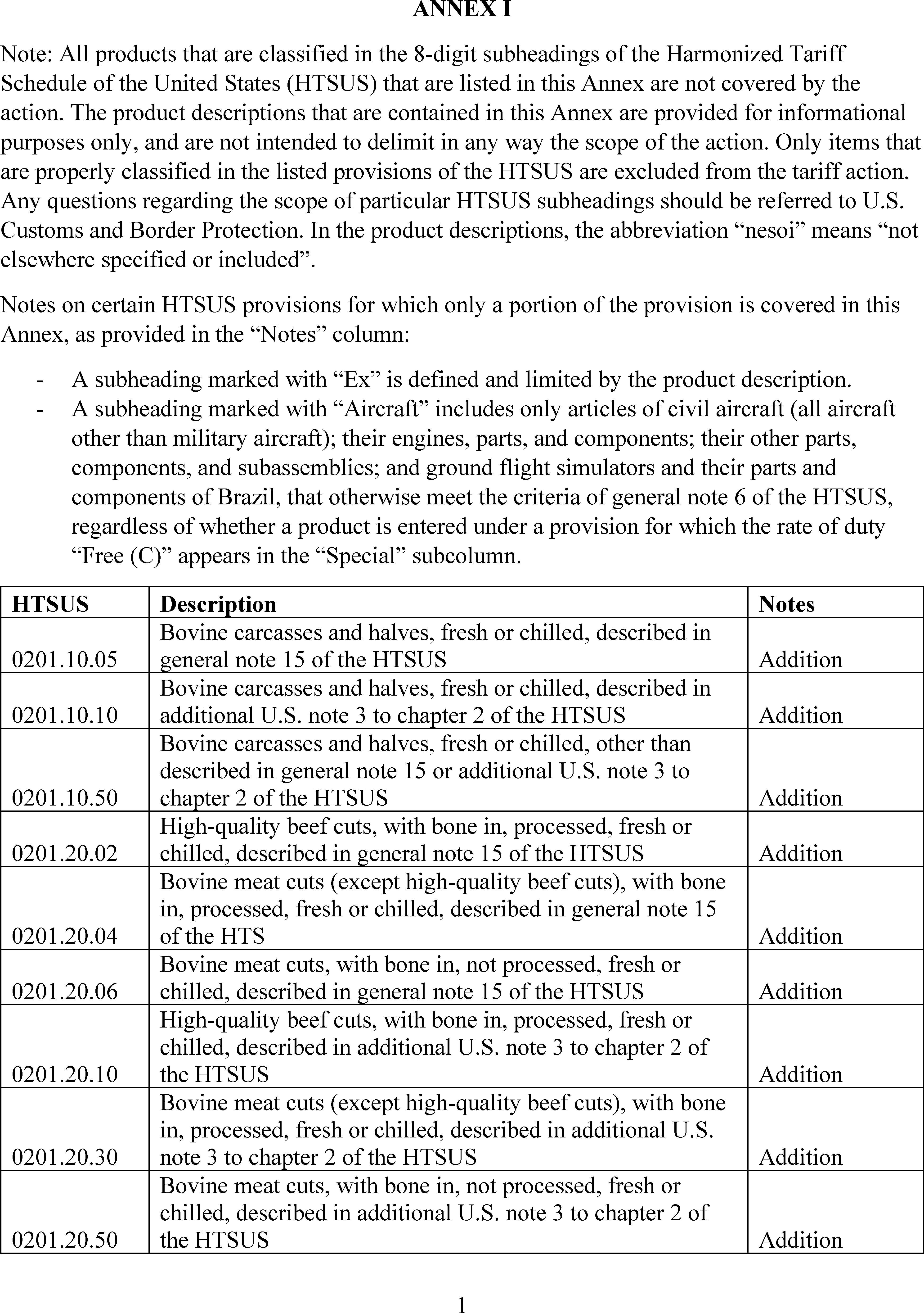 Section 1 . Background. In Executive Order 14323 of July 30, 2025 (Addressing Threats to the United States by the Government of Brazil), I found that the scope and gravity of recent policies, practices, and actions of the Government of Brazil constitute an unusual and extraordinary threat to the national security, foreign policy, and economy of the United States that has its source in whole or substantial part outside the United States. I declared a national emergency with respect to that threat and, to deal with that threat, I determined that it was necessary and appropriate to impose an additional ad valorem duty rate of 40 percent on certain articles of Brazil. Additionally, in Annex I to Executive Order 14323, I listed certain articles that, in my judgment, should not be subject to the additional ad valorem rate of duty imposed pursuant to that order.