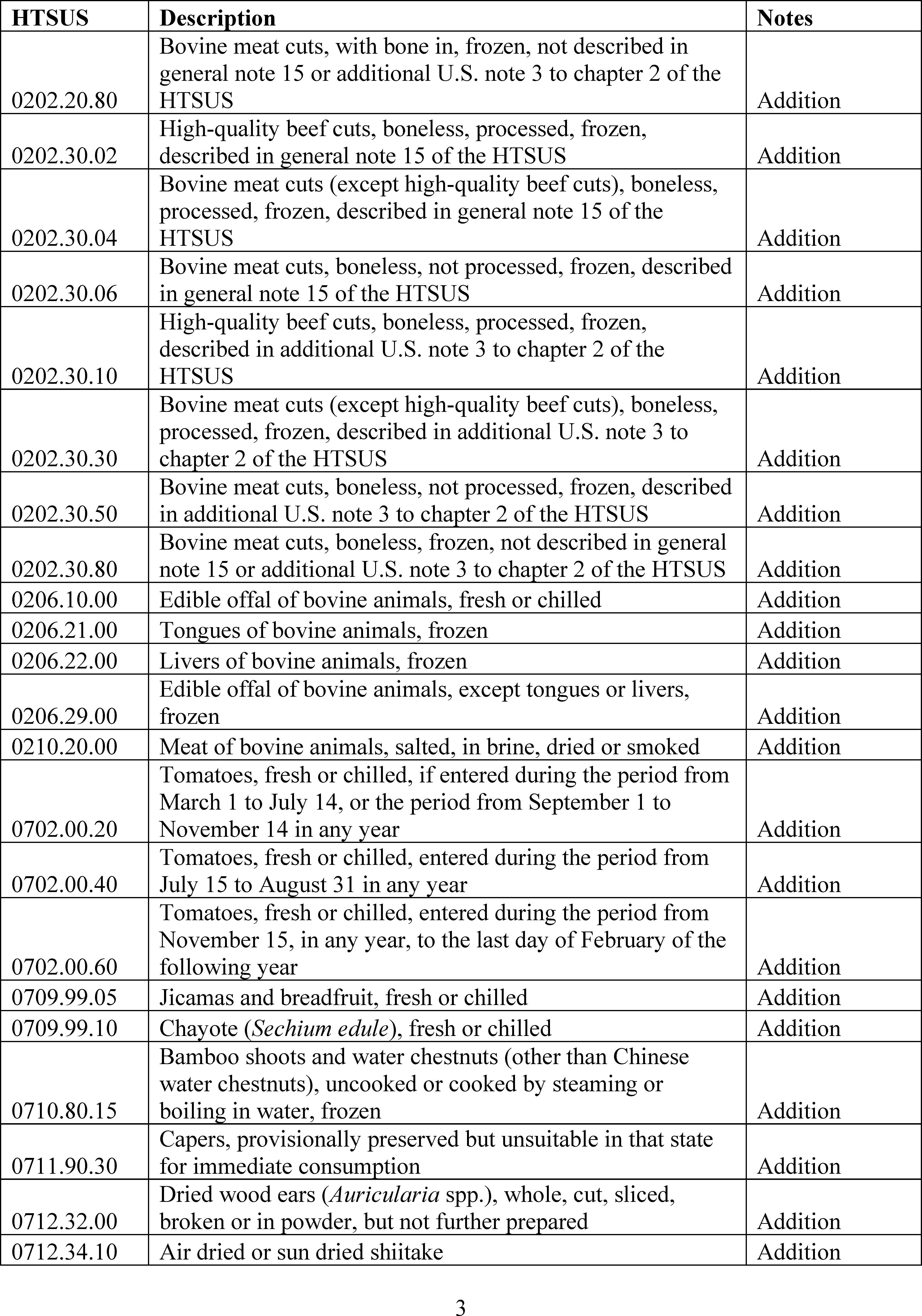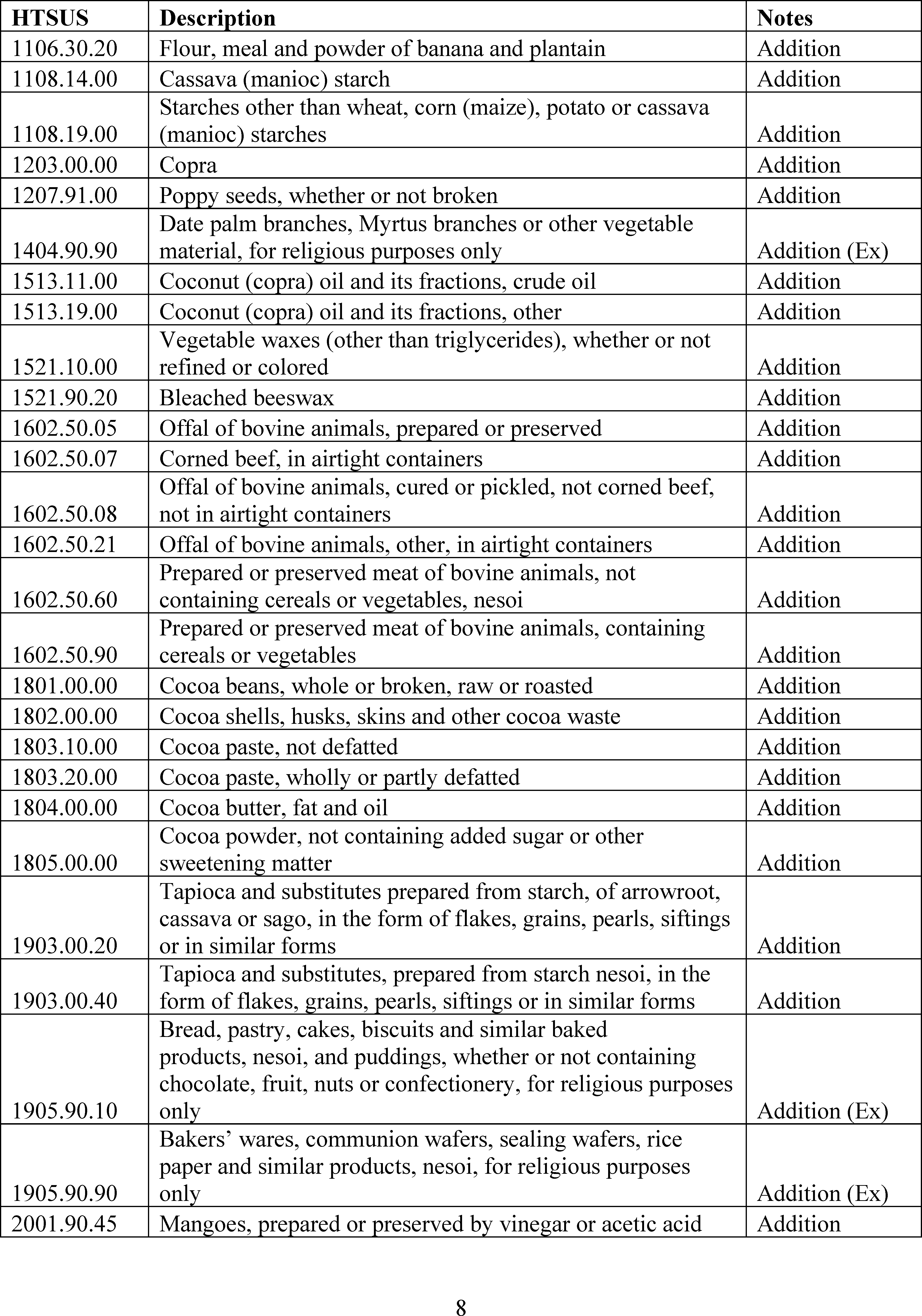 ( printed page 54468)Sec. 2 . Tariff Modifications. The Harmonized Tariff Schedule of the United States shall be modified as provided in Annex II to this order. The modifications shall be effective with respect to goods entered for consumption, or withdrawn from warehouse for consumption, on or after 12:01 a.m. eastern standard time on November 13, 2025. To the extent that implementation of this order requires a refund of duties collected, refunds shall be processed pursuant to applicable law and the standard procedures of U.S. Customs and Border Protection for such refunds.